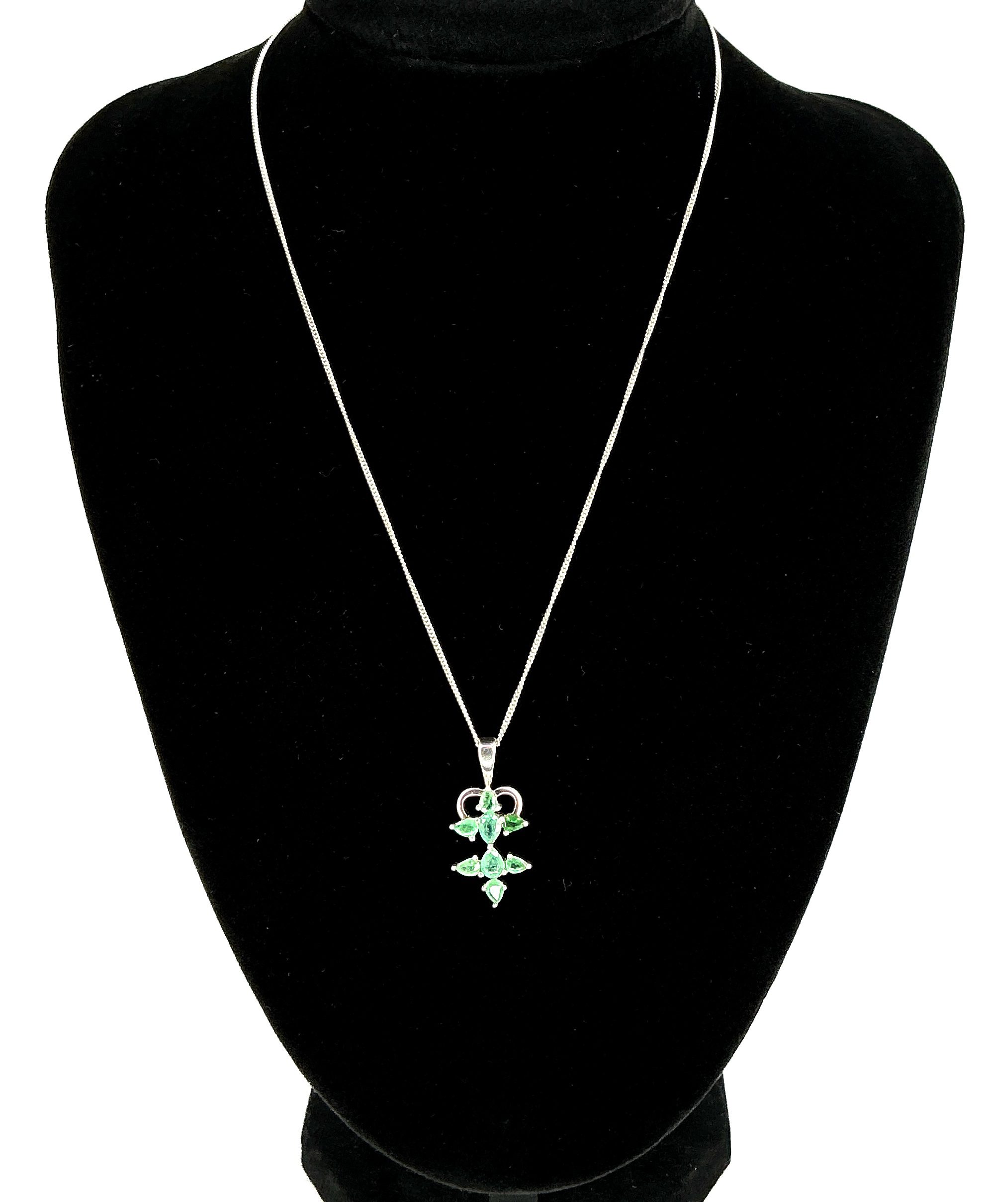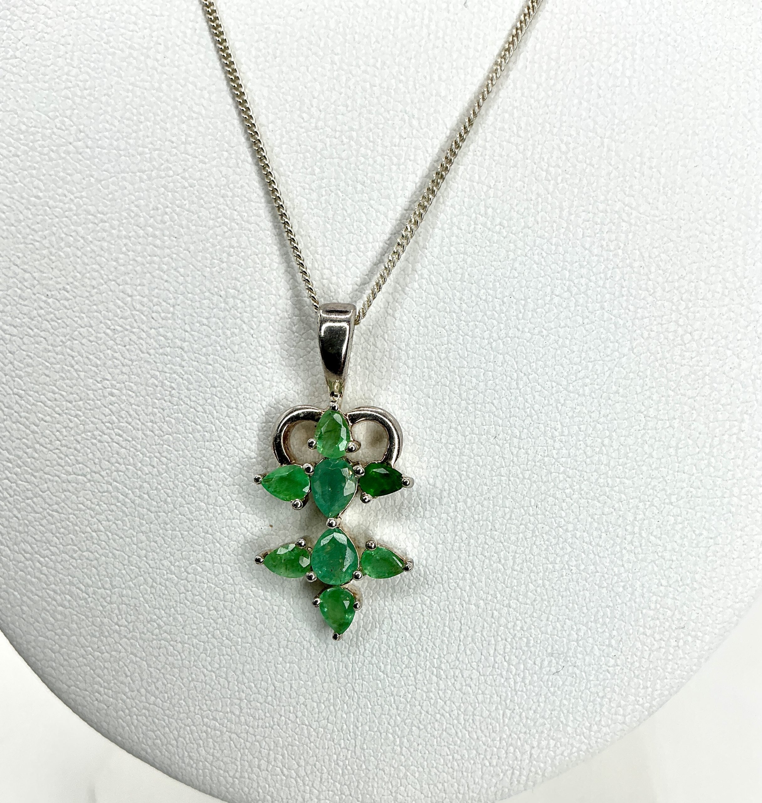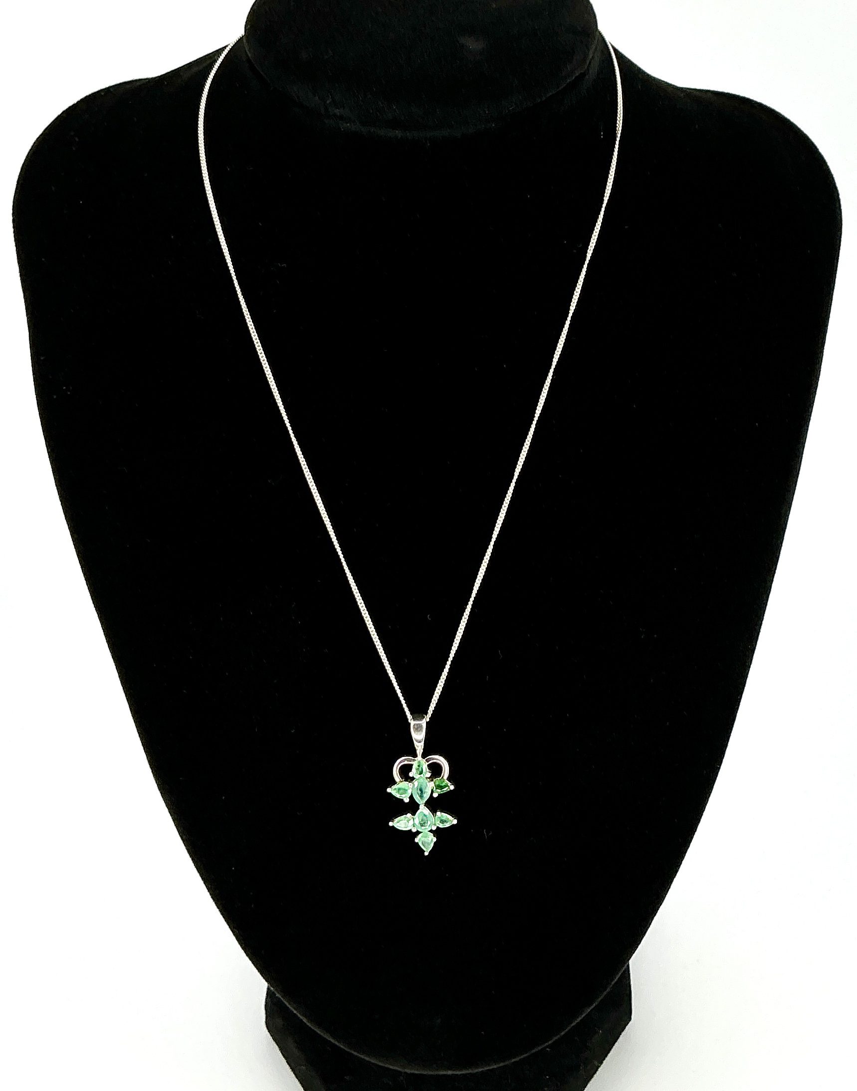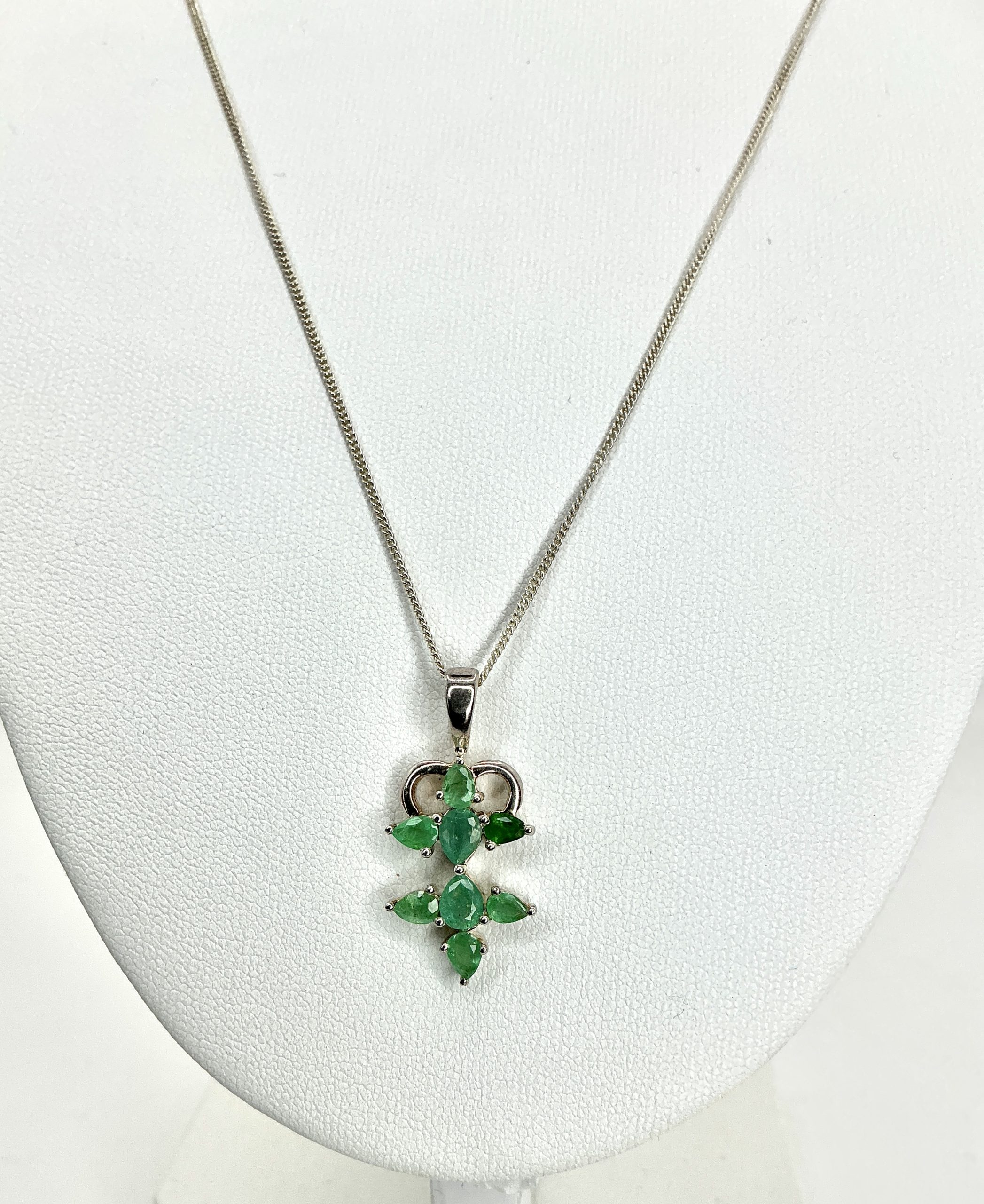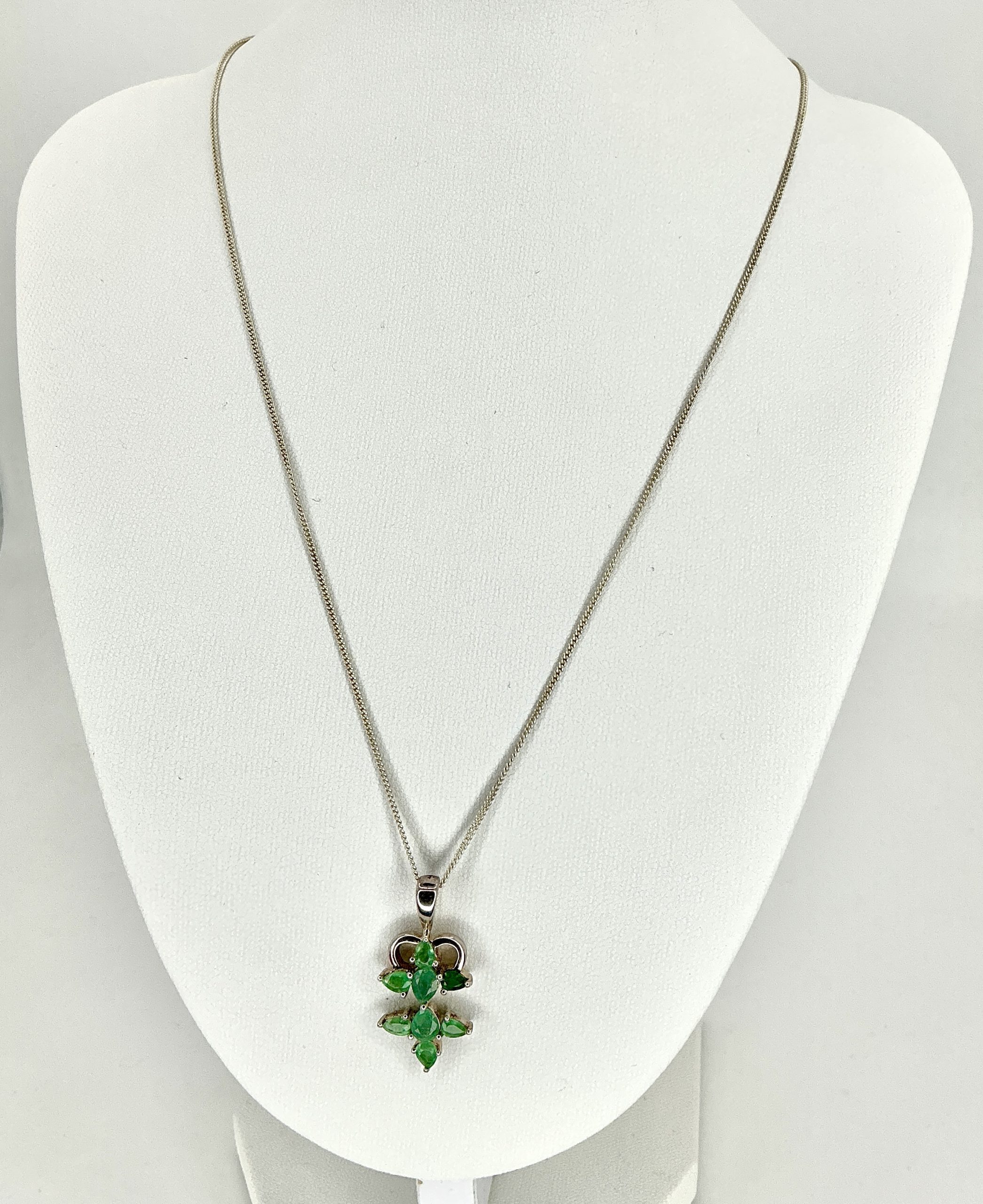 Elegant 925 Sterling Silver 16″ Necklace with Emerald Cluster Pendant – 4.13g Fine Jewellery Gift