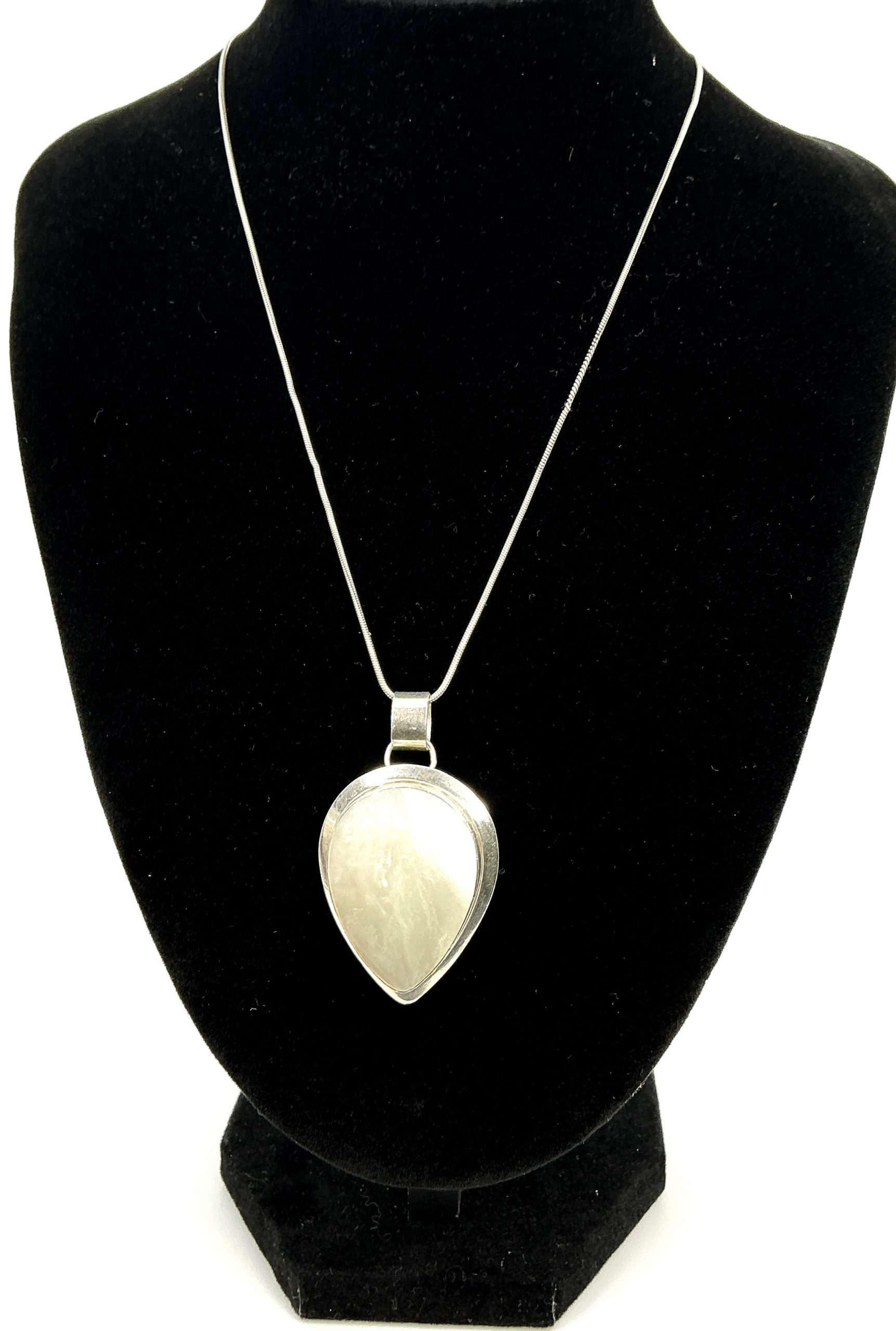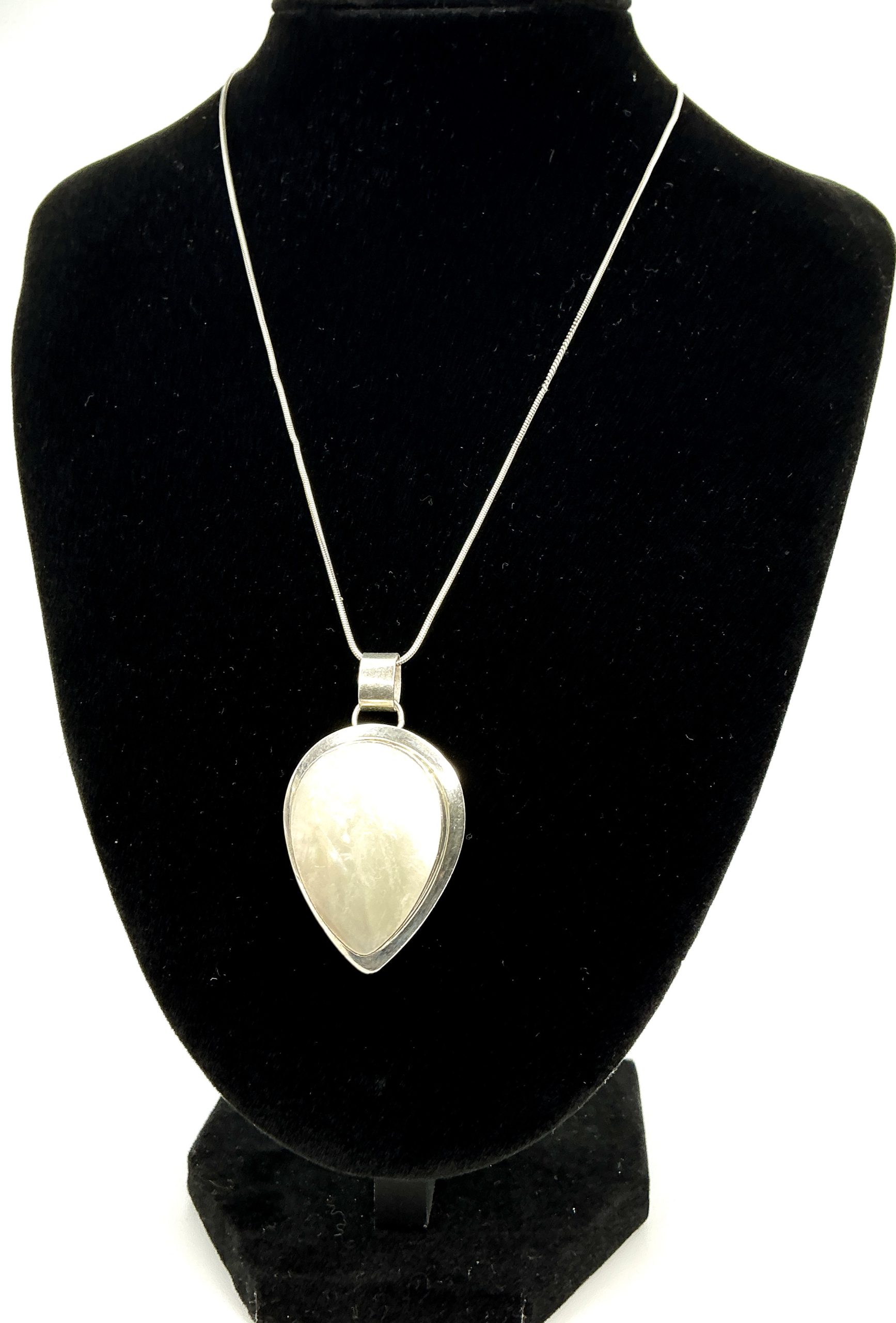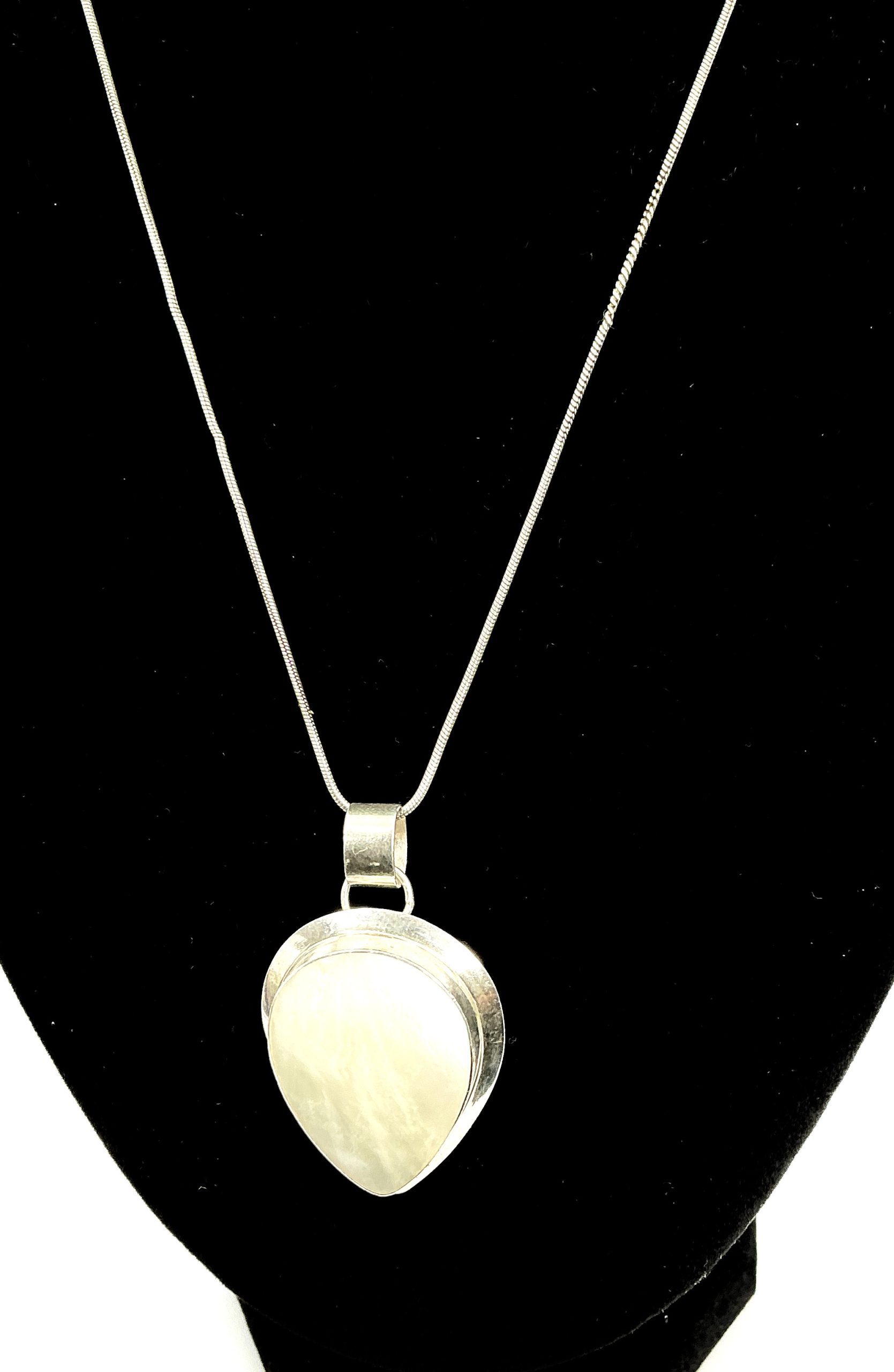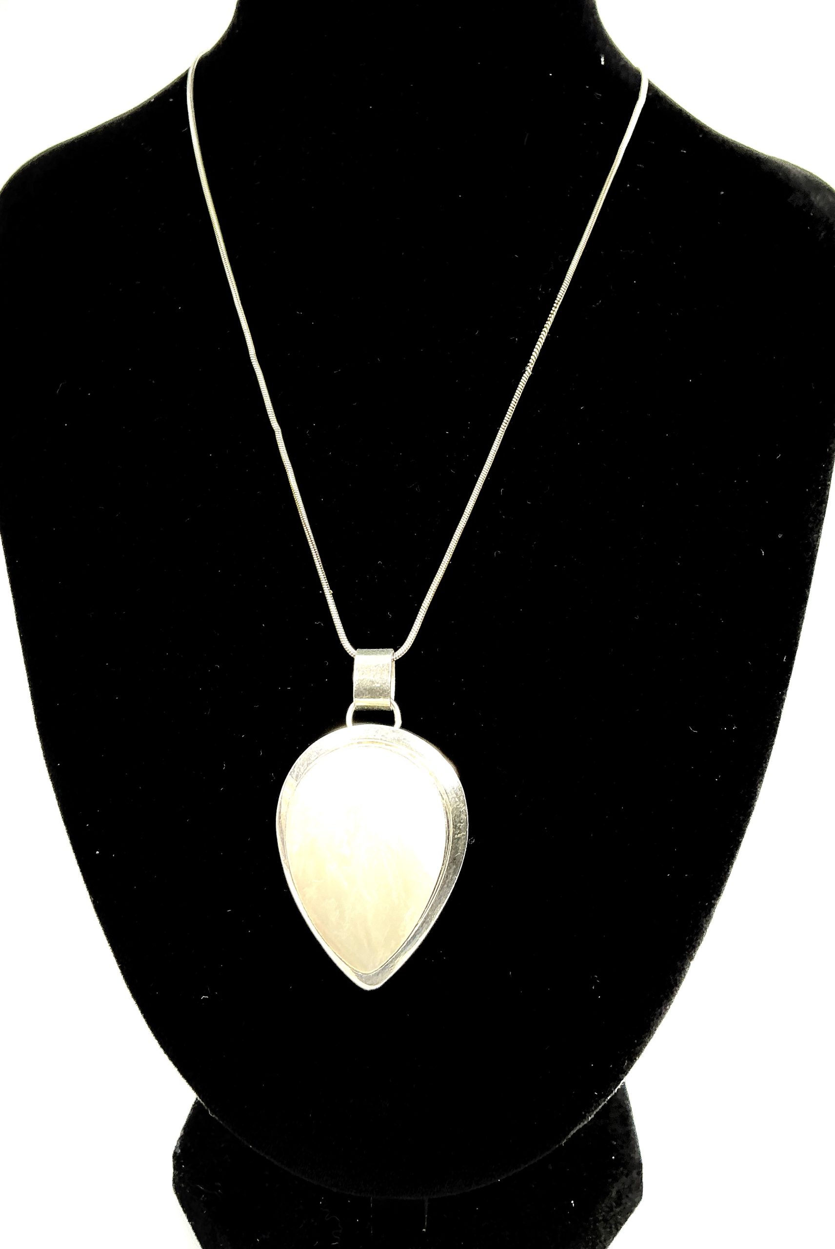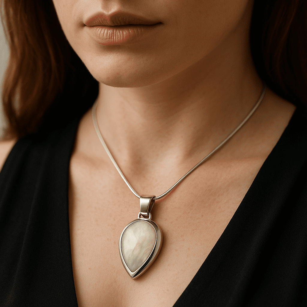 Introducing a striking piece of Italian craftsmanship — this Italian 925 Sterling Silver Pendant Necklace features a beautifully polished mother of pearl teardrop set in a bold silver bezel. The pendant is paired with a smooth, extendable 18-inch Italian snake chain, adding both fluidity and sophistication to the design.