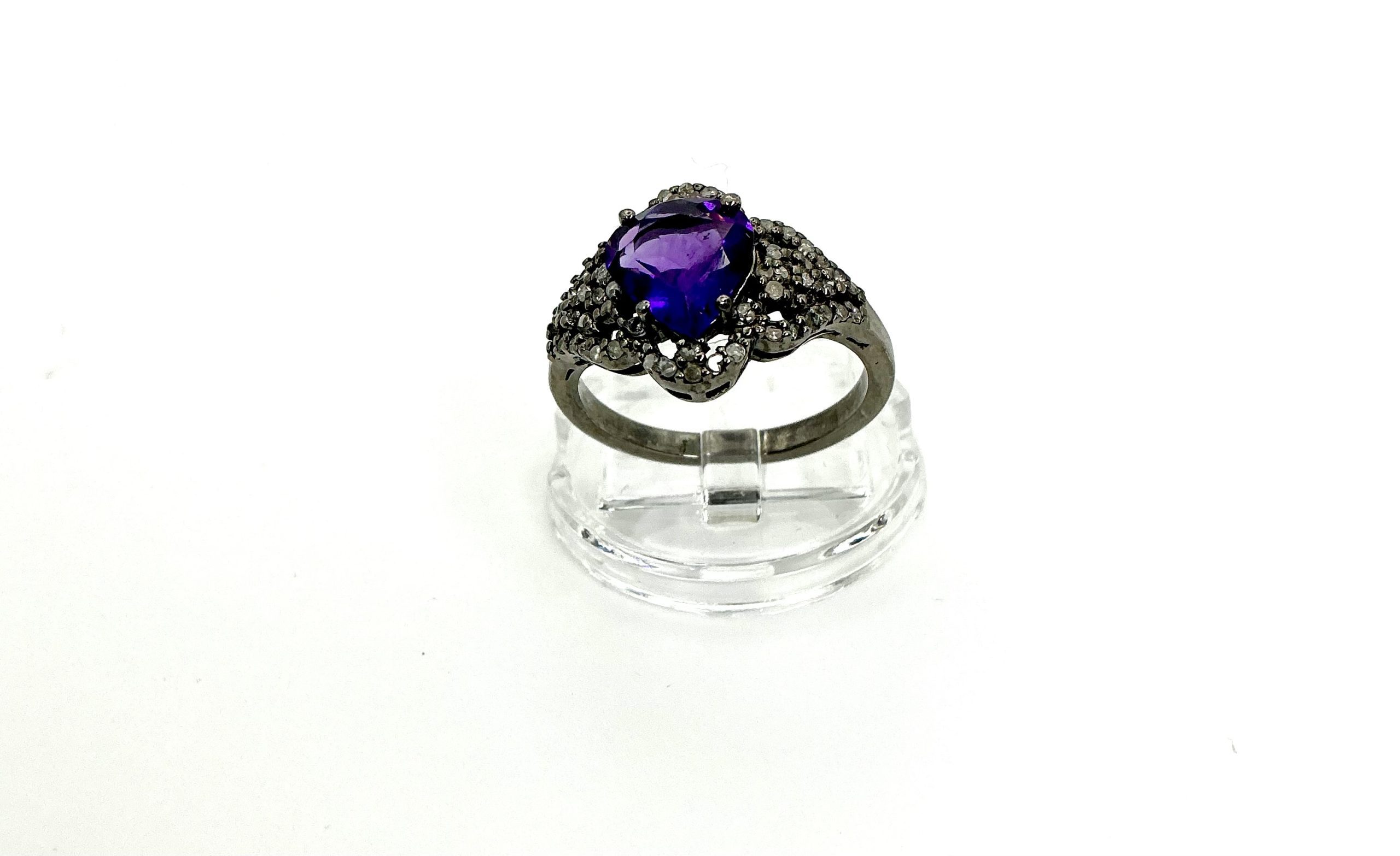 Luxury Amethyst & Diamond Sterling Silver Ring – Size Q – 4.02g