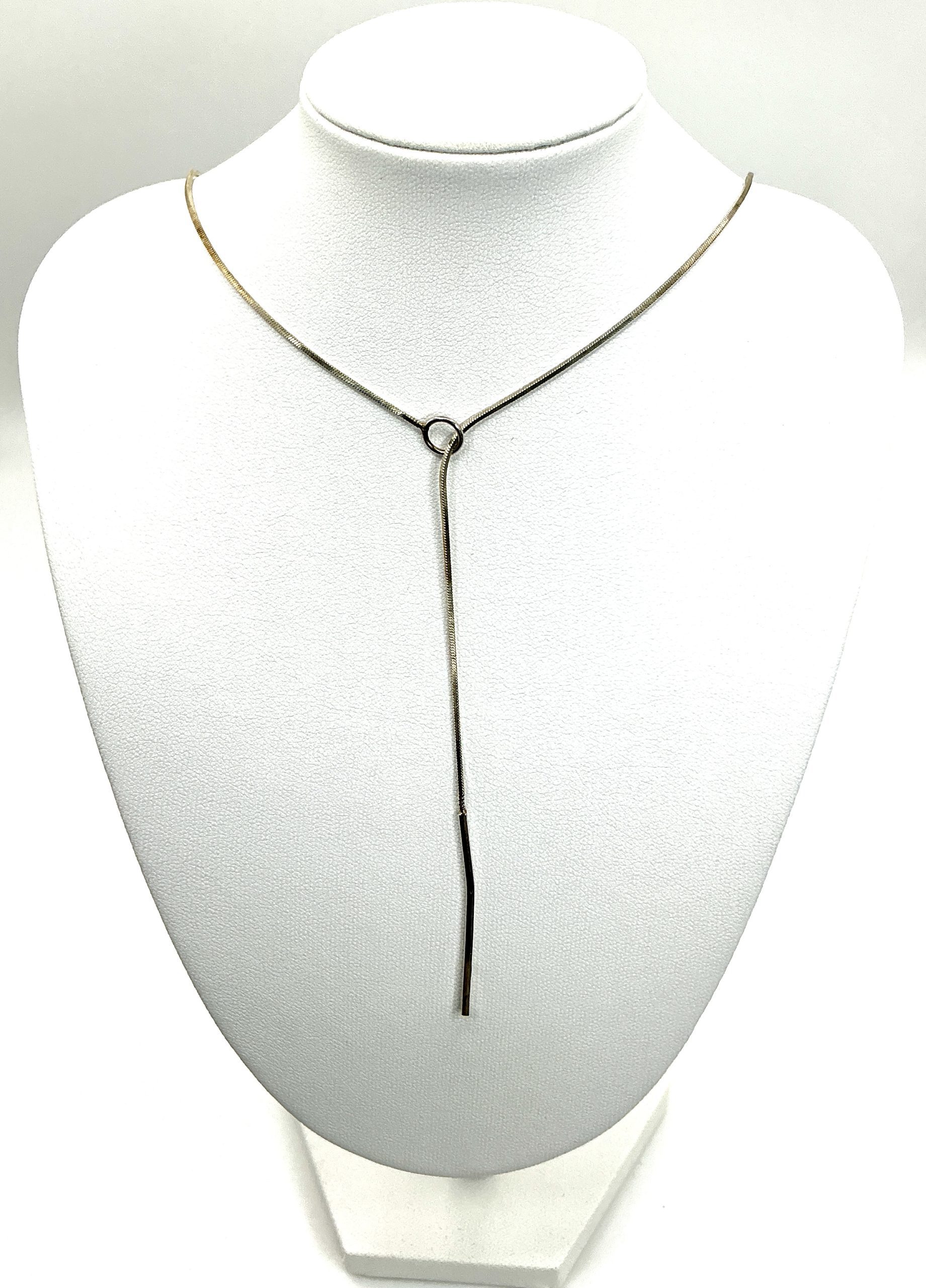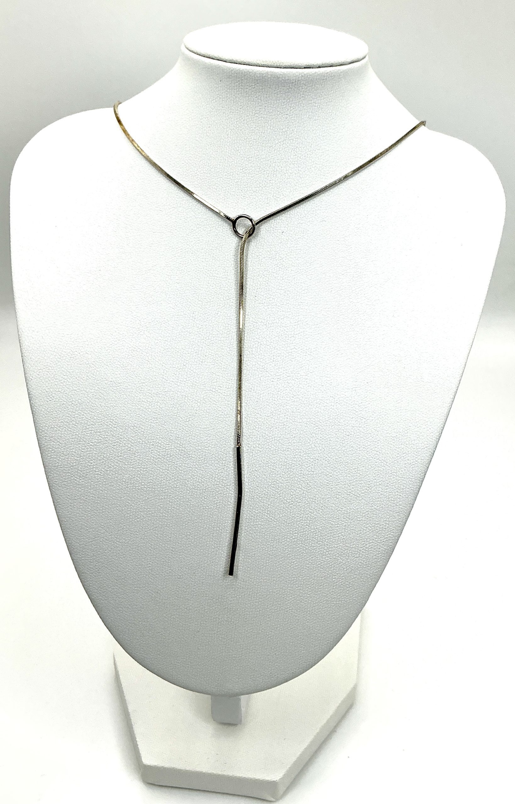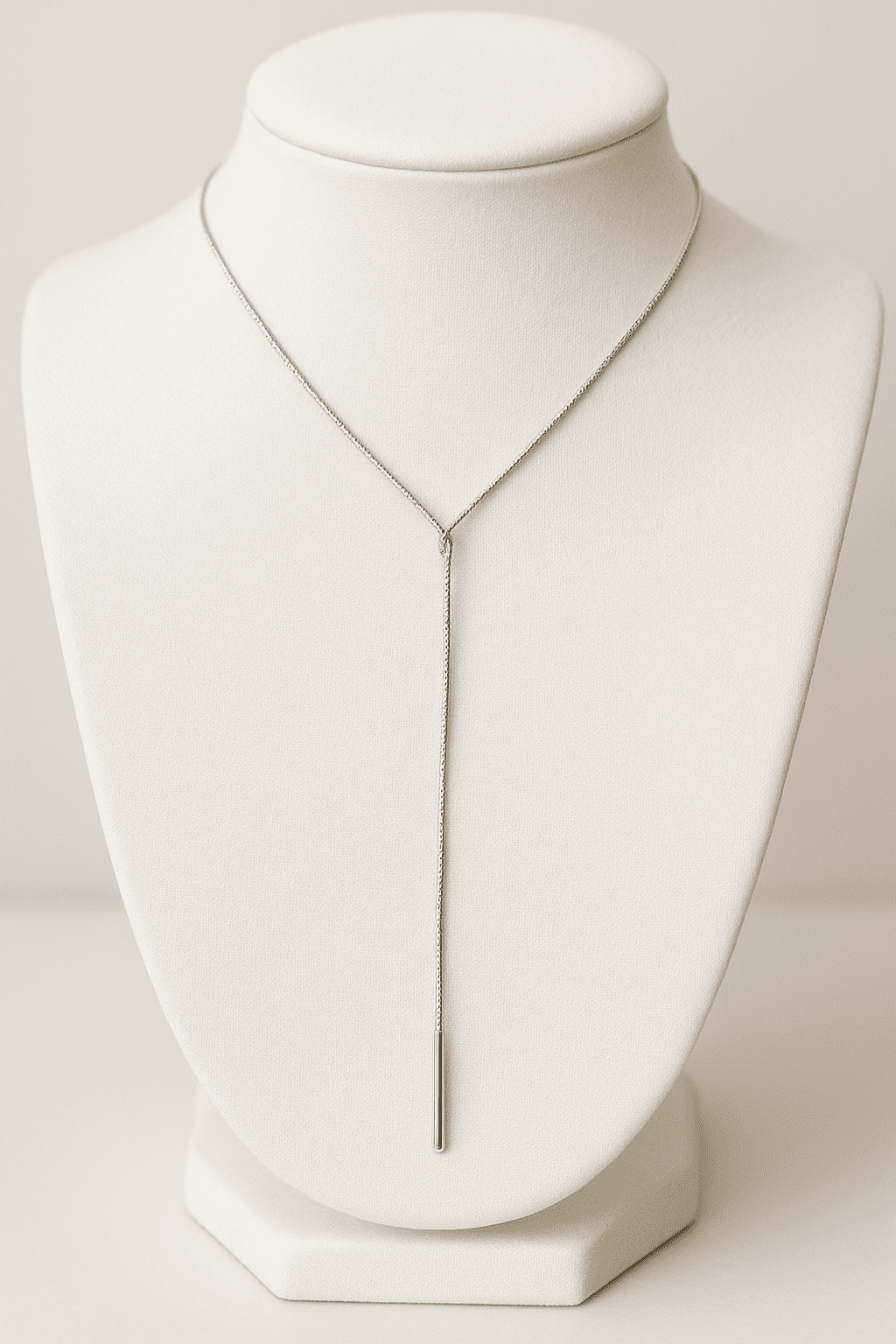 A sleek, modern classic: this lariat necklace in solid 925 sterling silver features a polished circle hoop and slender bar drop for a clean, architectural look. Stamped IBB 925 (the mark widely used by IBB Italy for quality sterling silver), the piece hangs at a flattering 18 inches, creating an elegant Y-line that lengthens the neckline and layers beautifully with other chains. At 5g, it’s light yet substantial enough to feel luxurious—perfect with a silk blouse by day or a minimalist evening dress.